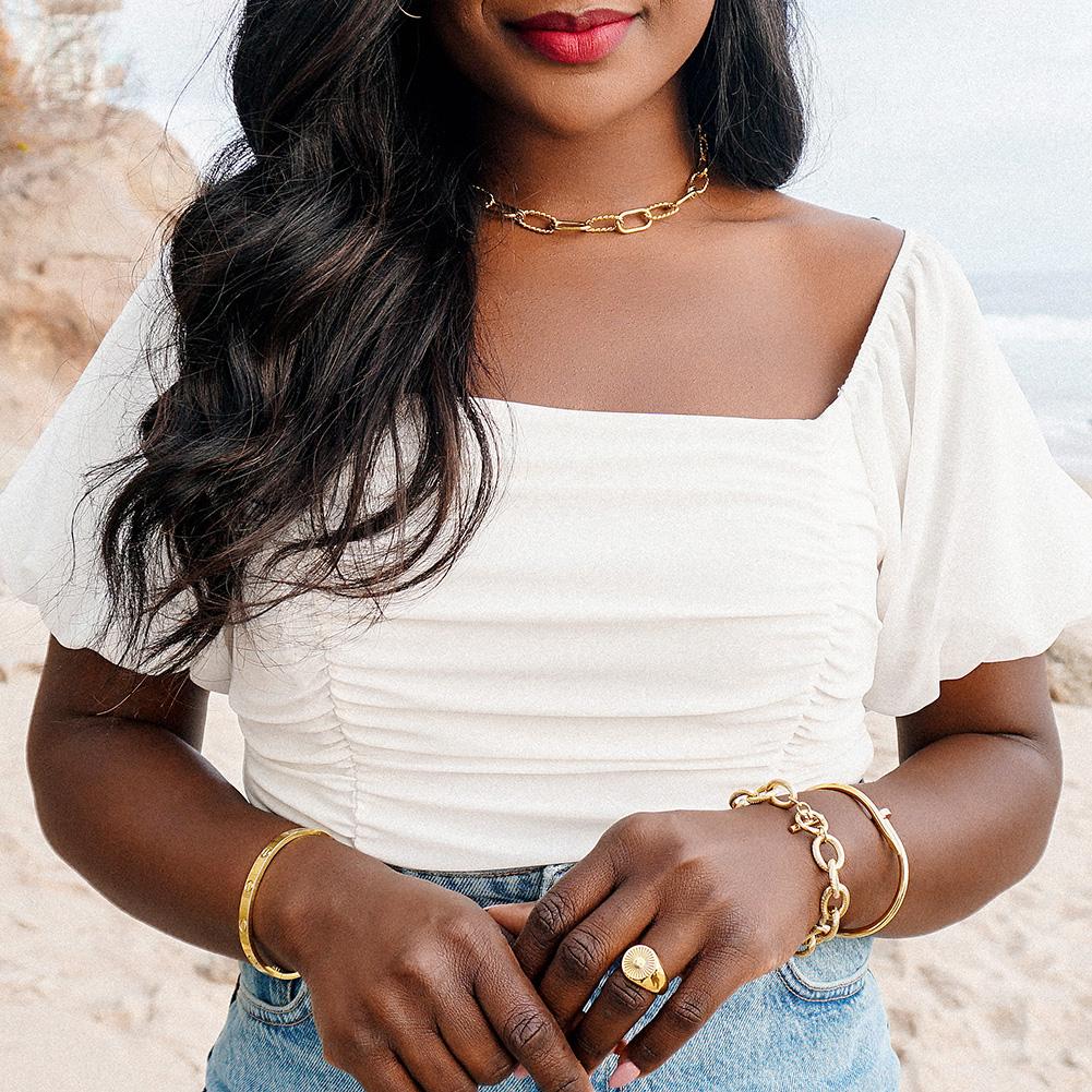 This charming necklaces featuring geometric rectangle metal linked with two different sized . They are definitely a stunning addition to any jewelry collection. It also gives more choices to people who originally liked rectangular metal geometric style necklaces. The chain and the matching bracelet also make great combo gifts for your loved ones. This ring design is inspired by the halo around the sun. No matter what you encounter, you can move forward without fear and with positive thoughts like the sun. The neat design is also very suitable for wearing on any occasion.